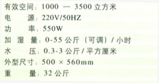 TS9002X型懸掛懸式加濕器技術(shù)參數(shù):