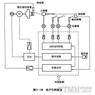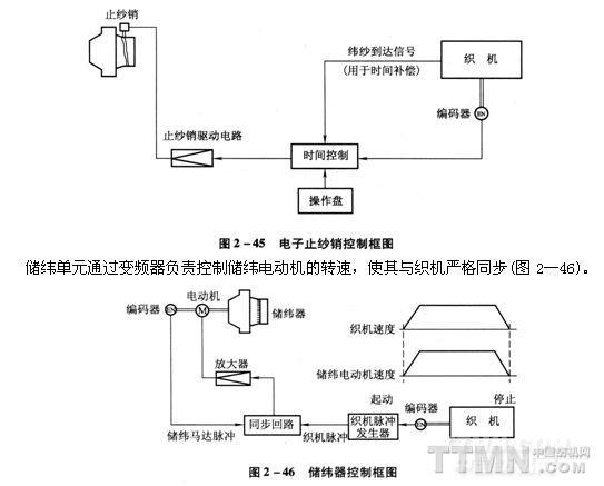 儲(chǔ)緯單元通過(guò)變頻器負(fù)責(zé)控制儲(chǔ)緯電動(dòng)機(jī)的轉(zhuǎn)速,使其與織機(jī)嚴(yán)格同步(圖2—46)。