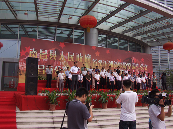 7月18上午,在南昌縣文化廣場,南昌市舉行了首條近郊新能源空調(diào)車公交線路的開通剪彩儀式。市政府副市長劉家富出席儀式并宣布201、203公交線路正式開通,市政府副秘書長曹吉清,南昌縣縣委書記郭毅、縣長陳匡輝等縣四套班子成員,市交通運輸局局長陳國鳳、副局長吳九銘及市政公用集團董事長熊一江,市政公用集團副總經(jīng)理、總公司總經(jīng)理李明等領導出席儀式。