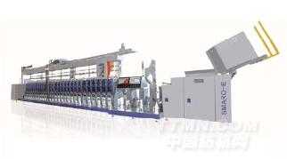 該機(jī)是在 SMARO-I 細(xì)絡(luò)聯(lián)型自動(dòng)絡(luò)筒機(jī)的基礎(chǔ)上開(kāi)發(fā)的托盤(pán)式自動(dòng)絡(luò)筒機(jī),本屆為首次展出,也是國(guó)內(nèi)首家推出,填補(bǔ)了國(guó)內(nèi)無(wú)托盤(pán)式自動(dòng)絡(luò)筒機(jī)的空白。與細(xì)絡(luò)聯(lián)型相比,增加了大紗庫(kù),實(shí)現(xiàn)了與細(xì)紗機(jī)的柔性連接。