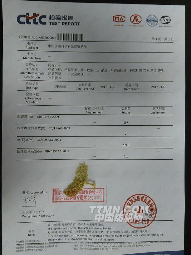 2 試紡5 Nm粘膠雪尼爾紗測試報(bào)告