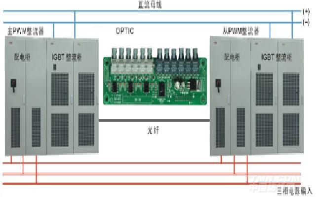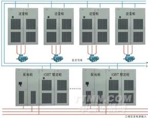2、由于系統(tǒng)的電流較大(按1920A*2計),整流/回饋裝置分為二組,每組二臺柜,每柜內(nèi)置3個200kW功率單元,每組1200kW,共計2400kW。四臺柜共12個200kW整流回饋功率單元并聯(lián)運行。