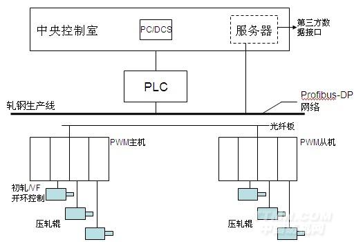 國內(nèi)某鋼廠集采選礦、鋼鐵冶煉、鋼材軋制為一體,其中軋鋼生產(chǎn)線集成了當(dāng)今世界先進(jìn)的生產(chǎn)工藝和技術(shù),采用了先進(jìn)的生產(chǎn)管理手段,其工藝裝備和產(chǎn)品檔次均達(dá)到國際一流水平。隨著計算機(jī)信息技術(shù)的快速發(fā)展,生產(chǎn)過程對生產(chǎn)效率和生產(chǎn)工藝的要求進(jìn)一步提高,此鋼廠進(jìn)一步加大技術(shù)改造力度,其扁鋼軋線項目使用英威騰IPE200系列四象限矢量變頻器和S7-300組成整流回饋多傳動控制系統(tǒng),在系統(tǒng)設(shè)計可靠性和工藝要求上達(dá)到國內(nèi)先進(jìn)水平。本文將對其進(jìn)行簡單介紹,對英威騰IPE200整流回饋多傳動系統(tǒng)著重說明。