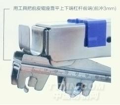 10、前沖3mm位置只要用工具把前皮輥座與上下端杠桿靠齊。