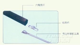 3、把氣囊管穿進六角支桿,氣囊管標志線對準六角支桿方孔中間。