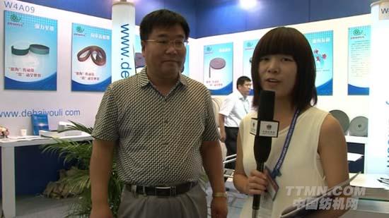 蔣董:我們公司主要生產(chǎn)高強(qiáng)度傳送帶,具體說呢,就是尼龍平帶,超盤橡皮帶,同步齒形帶,今天帶來了一個新產(chǎn)品:高強(qiáng)錠身聚酯龍帶,這種傳動帶在國內(nèi)也是為數(shù)不多的幾家在生產(chǎn),今天我們是重點(diǎn)推出這個產(chǎn)品。這個產(chǎn)品在兩年前基本上都是進(jìn)口的產(chǎn)品,現(xiàn)在我們已經(jīng)實(shí)實(shí)在在將這個產(chǎn)品拿出來了,這整個展會,我們也發(fā)現(xiàn)一共兩家,我們是其中一家。這種傳送帶最大的優(yōu)點(diǎn)是無接頭的,它也叫插接。這種傳送帶適于超高速運(yùn)轉(zhuǎn),以前是進(jìn)口的,現(xiàn)在我們國內(nèi)已經(jīng)生產(chǎn)出來了。我們公司也是一家中外合資公司,所以說我們有這個實(shí)力,也有技術(shù)實(shí)力去解決這個問題。