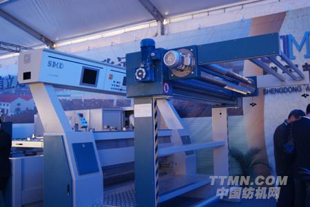 石:我們主要帶來了藍(lán)翔2010倍捻機(jī),這個(gè)產(chǎn)品現(xiàn)在我們做了一些改進(jìn),假捻機(jī)最主要的是多了一個(gè)假捻器和一個(gè)熱箱。這個(gè)假捻器是我們自己生產(chǎn)的,為了讓客戶以后維修帶來方便。熱箱這邊是我們控制系統(tǒng)增加了一個(gè)報(bào)警功能,和一個(gè)溫度自動補(bǔ)償功能。這一點(diǎn)市場上原有的廠家里面我們是獨(dú)創(chuàng)的首先第一家。其他的像剎車的話也是重新設(shè)計(jì),然后皮帶盤后面,機(jī)尾上面也是多加了一個(gè)皮帶盤。為了我們以后的機(jī)器更加容易省電,還有增加絨帶的壽命。然后我們的主電機(jī)就從別人的第一代產(chǎn)品從11kW,減到了7.5kw。我們的整體機(jī)身比原先的機(jī)身下降了14公分。為了便于我們客戶那邊招工方便。就是這些優(yōu)勢。