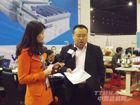 (圖為拓卡奔馬的鄭總在接受紡機(jī)網(wǎng)記者的采訪 中國(guó)紡機(jī)網(wǎng)(TTMN.COM)攝)