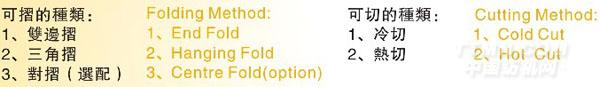 "永盛嘉"機(jī)械產(chǎn)品全面覆蓋各種商標(biāo)自動(dòng)剪切、商標(biāo)折疊機(jī)、商標(biāo)過漿機(jī);配置有超聲波,冷、熱切,整燙功能,可以自動(dòng)完成各種單折、對(duì)折、雙邊折、三角折(掛吊折),信封折,以及“雙邊折后再對(duì)折”,針對(duì)織或印的商標(biāo)而設(shè)計(jì)的電眼裝置,對(duì)各種軟質(zhì),硬質(zhì)商標(biāo)的剪折達(dá)到更滿意的效果。