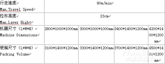 (2)機器最高行走速度可達80米/分鐘,行走長度可根據鋪布需求和臺板長度設定??稍跀悼赜|摸屏上設定需要速度和行走距離,鋪布速度和返回速度均可人工設定。