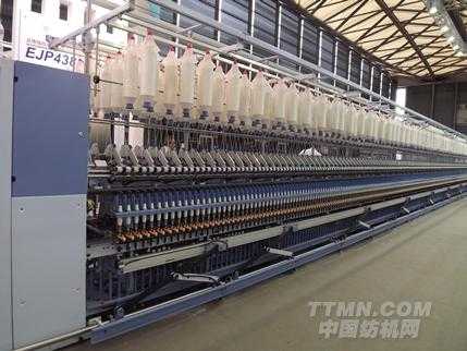 此款機(jī)器是上海二紡機(jī)的成熟產(chǎn)品,已多次參展。本屆展會(huì)增加了水霧捻接器選用配置,以適應(yīng)低支、低支竹節(jié)紗接頭外觀及強(qiáng)力要求。技術(shù)特點(diǎn)主要有:采用無刷直流電機(jī)直接驅(qū)動(dòng)槽筒,平滑起動(dòng),控制在加速過程中滑移并保護(hù)紗線;采用電子防疊,Autospeed 功能實(shí)現(xiàn)對(duì)退繞張力的控制,使卷繞張力保持恒定。由光電傳感器監(jiān)控卷繞過程,以減少回絲、降低能耗和機(jī)械動(dòng)作時(shí)間。展機(jī) 30 錠,紡紗品種:精梳純棉 40S,紡紗速度:1200m/min,筒紗錐度:5°57′,空氣捻接器,水霧捻接器。