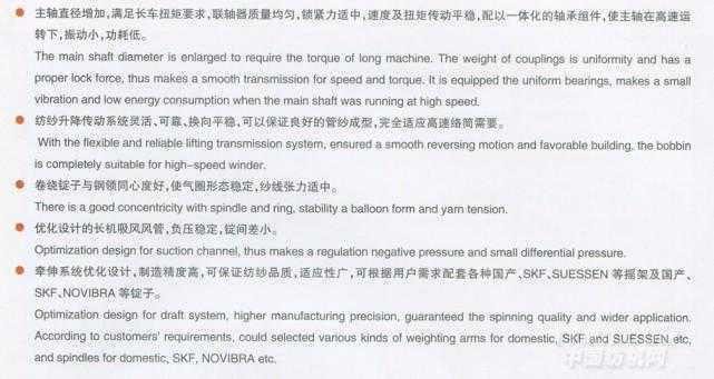 ② 采用臺灣三明鋼帶式集體落紗裝置,拔管率達 99%以上;