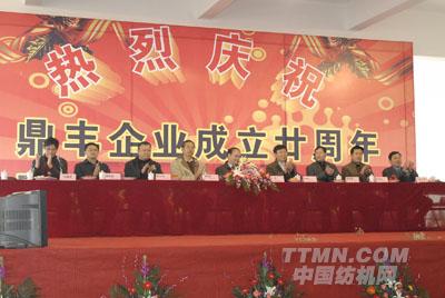 2009年1月1日,鼎豐企業(yè)20周年慶典暨新辦公樓落成慶典隆重舉行。董事長(zhǎng)余定泉先生以一段激情澎湃的演講回顧了20年來艱辛的創(chuàng)業(yè)歷程以及鼎豐企業(yè)20年的發(fā)展進(jìn)程與對(duì)未來的展望。在慶典隨后的環(huán)節(jié)中,舉行了員工自發(fā)組織的精彩的文藝表演,隨后是全體員工大聚餐。 來自中國(guó)紡織工業(yè)協(xié)會(huì)副會(huì)長(zhǎng)、中國(guó)紡織機(jī)械器材工業(yè)協(xié)會(huì)理事長(zhǎng)、全國(guó)紡織機(jī)械與附件標(biāo)準(zhǔn)化技術(shù)委員會(huì)主任委員高勇先生,中國(guó)紡織機(jī)械器材工業(yè)協(xié)會(huì)標(biāo)準(zhǔn)質(zhì)量部主任、全國(guó)紡織機(jī)械與附件標(biāo)準(zhǔn)化技術(shù)委員會(huì)秘書長(zhǎng)黃鴻康先生,中國(guó)紡織機(jī)械器材工業(yè)協(xié)會(huì)副理事長(zhǎng)、全國(guó)紡織機(jī)械與附件標(biāo)準(zhǔn)化技術(shù)委員會(huì)副主任委員祝憲民先生,紹興縣人民政府副縣長(zhǎng)李海洋先生,紹興縣質(zhì)量技術(shù)監(jiān)督局局長(zhǎng)李衛(wèi)龍先生,紹興縣科技局局長(zhǎng)婁剛強(qiáng)先生,柯橋經(jīng)濟(jì)開發(fā)區(qū)管委會(huì)黨工委書記、主任丁生產(chǎn)先生,中共紹興縣委組織部副部長(zhǎng)王勤先生和安昌鎮(zhèn)人民政府鎮(zhèn)長(zhǎng)傅青春先生等領(lǐng)導(dǎo)的出席也讓此次慶典顯得隆重而輝煌。