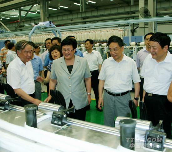 上海寶山區(qū)區(qū)長汪泓(右三)考察太平洋機電寶山紡機制造基地