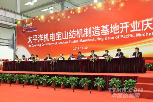TTMN訊 2012年11月30日上午,太平洋機電(集團(tuán))有限公司在上海寶山區(qū)隆重舉行太平洋機電寶山紡機制造基地開業(yè)慶典。