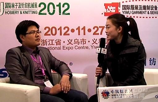 王經(jīng)理:好的,謝謝!我們五洋紡機做經(jīng)編也有二十幾年的歷史了。義烏展會我們是從去年開始參加的,今年我們?nèi)匀粎⒓恿?。因為義烏這邊做襪子還有衣服、內(nèi)衣等市場很大。我們公司投入三維全成形智能化服飾經(jīng)編機這個項目已經(jīng)有五年了。去年開始這款機器投入市場正式使用,而我們這一次帶來的機器相對于去年也有了一個突破。去年我們的機號是二十四針,今年是三十針。無論是在國內(nèi)還是在國際同行業(yè)我們?nèi)樀臋C號都是出于領先的地位。我們這次帶來的機器既可以做服裝也可以做襪子、內(nèi)衣等,速度也可以開到六百五到七百轉,機號比去年也提高了六針。我們公司花很大的精力投入到機器的技術研發(fā)上,我們作為紡機行業(yè)的老企業(yè)要想占領市場必須要加大科研和技術上的創(chuàng)新。只有創(chuàng)新才能適應市場,未來經(jīng)編機做襪子包括做服飾,我們就占領了這個制高點。我們現(xiàn)在呢就是想以義烏為點,將我們的市場逐步擴大到全國乃至其它國家。通過義烏還有廣東的展會來拓展市場。我們公司始終秉承著“科技創(chuàng)新、引領市場”的企業(yè)文化,加之我們每個“五洋人”的努力,不斷開拓我們的市場。
