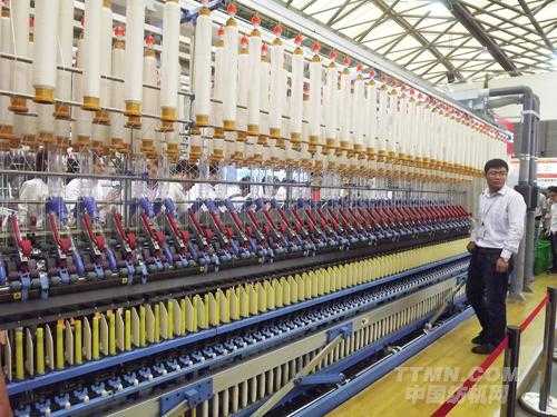 崔總:我們這一次展示的是短車機器裸紗緊密紡細紗機。它的特點一是高速,二是機靈,第三它是緊密紡專司,在國內來講是首創(chuàng)。