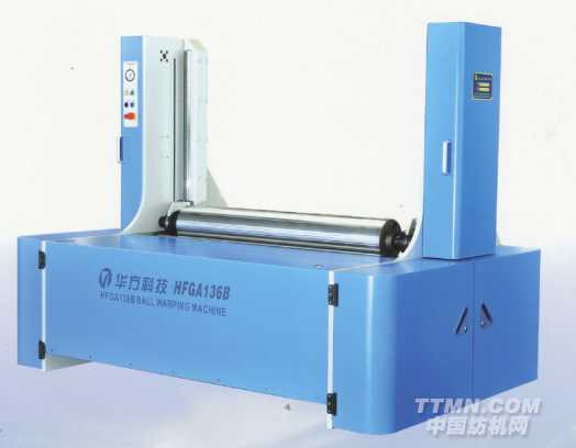 江陰華方新技術(shù)科技有限公司在2012年上海紡機(jī)展上展出 HFGA136B球經(jīng)整經(jīng)機(jī)車頭1臺(tái)。該機(jī)功能是將筒子架上的紗線集束后,卷繞在球經(jīng)軸上,供各種型號(hào)的束狀染色機(jī)使用。最后再經(jīng)分紗整經(jīng)機(jī),將染色后的束狀紗條改變成片狀紗線后卷入經(jīng)軸。成型寬度:1200mm,成型直徑:1400mm,經(jīng)紗速度:10~350m/min。
