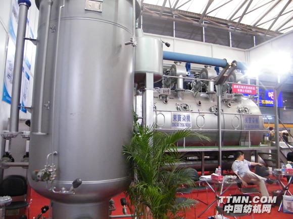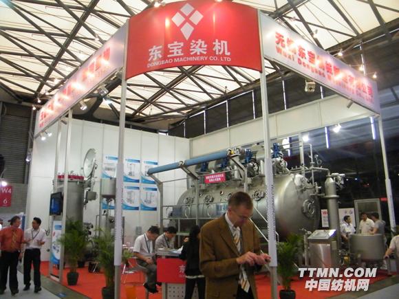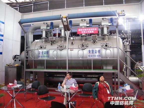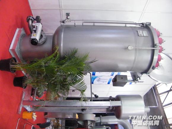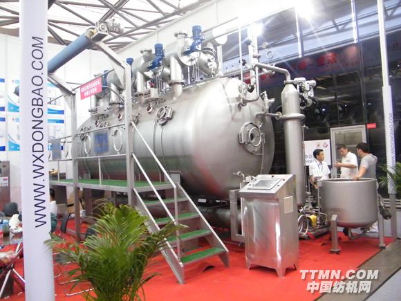 無錫東寶機械制造有限公司在《2010年中國國際紡織機械展覽會暨ITMA亞洲展覽會》展出的是DBKS高溫高壓噴射自動染紗機適用于成絞狀絳綸絲、繡花線、真絲、尼龍等絞紗的漂白、精練、染色、水洗及后處理。 ·本機采用了特殊設(shè)計的低能耗、低揚程、大流量混流泵。高溫時絲毫不影響其特征。 ·新型溢流式噴射管、染色管與翻紗移位管成為一體,被染物絕對沒有咬紗纏繞或打結(jié)現(xiàn)象,染色后倒筒容易,損失率低。 ·特殊設(shè)計水量調(diào)節(jié)器可視染紗量及紗支數(shù)、種類不同,任意調(diào)節(jié)水量大小。 ·該機經(jīng)過結(jié)構(gòu)優(yōu)化、浴比小、節(jié)約原料、低降成本。