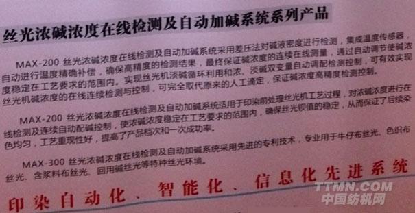 最近,常州宏大新推出了MAX系列絲光堿濃度在線檢測及自動加減系統(tǒng),MAX系列絲光堿濃度在線檢測及自動加減系統(tǒng)全面的、專業(yè)的、系統(tǒng)的,唯一能適應各種場合的堿濃度測控產(chǎn)品。