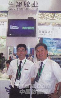 無錫蘭翔膠業(yè)有限公司在本次展會上推出了系列LXC免處理膠輥.適紡純棉21~60支紗線.受到觀眾的好評。此外,該公司還展出了紡紗用膠輥、搓毛膠板以及印染滾筒、膠輥涂料等產(chǎn)品。圖為該公司展位前銷售人員接受記者采訪。