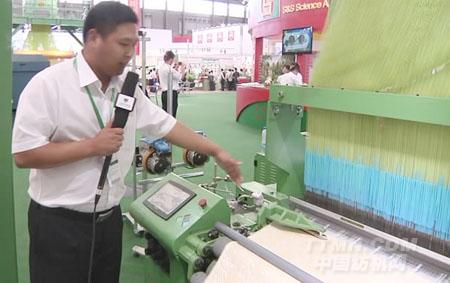 ??偅耗壳霸谏虾U箷且哉追桨竵碚钩?,現(xiàn)在這個就是噴氣織機的整套制造,噴氣織機主要用在家紡、裝飾布等領(lǐng)域,我們這款設(shè)備融合了日本和歐洲的噴氣織機的特點。這款設(shè)備有三大特點:第一是整體的鏟板設(shè)計,第二是六連桿打緯的方式,第三是便于調(diào)節(jié)噴嘴的氣壓。然后新型的電子提花機具有免維護、更高速、更節(jié)能,為客戶提供了成本上的節(jié)省,織造成本和維護成本。