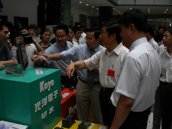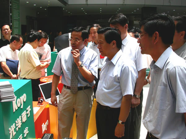 2005年7月19日江蘇省省委書記李源潮、省長梁保華等視察光洋電子(無錫)有限公司新產(chǎn)品