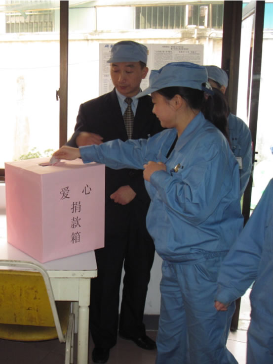 員工在捐款
