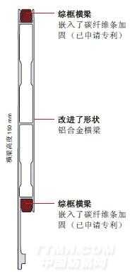 ALtop Hybrid?型綜框的邊撐與橫梁的角連接橫梁剖面圖