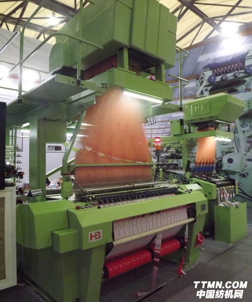 據(jù)悉,JAB系列劍桿商標機最顯著的功能是達到了600mm幅寬,不僅僅應用于生產商標織物,還可以用來生產各類圖案織物,堪稱織物產品的打印機。同時該產品在全球市場上有著非凡的競爭力。智能、高效的控制系統(tǒng),使該機器能實現(xiàn)多品種織物的生產轉換??蓪崟r顯示的操作界面和高效率的品種轉換,除為特殊要求用戶裝造不同龍頭外,還為用戶獲得生產多品種和高效率的雙向優(yōu)勢。工作人員向我們自豪的介紹新一代機器總效率提升20%,在500rmp下可長時間穩(wěn)定運行。該產品的誕生標志著中國窄幅織機制造已邁入國際先進行列。