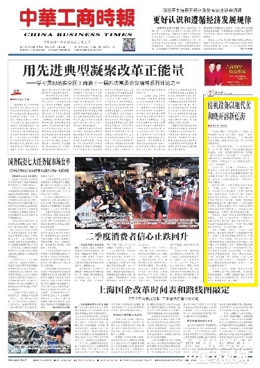 《中華工商時報》頭版:紡機設(shè)備以租代賣和鷹開辟新藍海