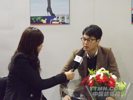 (圖為中寶機械的管經(jīng)理在接受中國紡機網(wǎng)記者的采訪 中國紡機網(wǎng)攝)