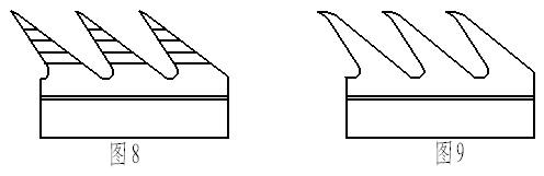 (1)總高h1、齒深h6:齒深的大小直接關系到齒間容量的大小及分梳、均勻混合和轉移等作用的好壞。采用矮齒、淺齒,使纖維處于齒尖,與另一針面(蓋板、道夫)的接觸長度和作用齒數(shù)增加,錫林與蓋板交替作用增加,利于分梳、轉移,對減少棉結有利,解決了小工作角針布的轉移問題,也為增加齒密、增大前角創(chuàng)造了條件。h6小,減少纖維充塞,抗軋性能好,氣流產(chǎn)生弱,從而減少氣流外溢。但h6不能太小,否則貯存纖維量少,影響均勻混合作用。
