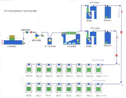 異纖分檢機(jī)在清梳聯(lián)生產(chǎn)線上的安裝示意圖