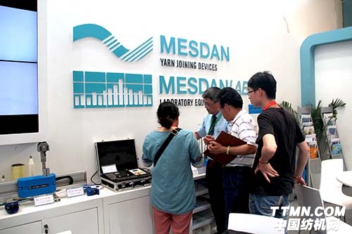 作為一個專業(yè)的全系列機(jī)械式打結(jié)器及空氣接捻器的生產(chǎn)商,意大利美斯丹(MESDAN)如往常一樣,在研發(fā)新品的同時,也不忘在各大展會上展示自己。在2014年中國國際紡織機(jī)械展覽會暨ITMA亞洲展覽會,意大利美斯丹攜ILLMAN SPLCER101手動式包纏器、HUMY TESTER Code185B手提式紡織含潮率測試儀、JOINTAIR 4941A 手動式空氣捻接器、Neps And Trash Indicator Code3280A 棉結(jié)及雜質(zhì)分析儀和新產(chǎn)品MOISTAIR 6901型噴霧捻接器亮相。盛大的產(chǎn)臺規(guī)模,先進(jìn)的產(chǎn)品演示,讓美斯丹展臺人流如織。