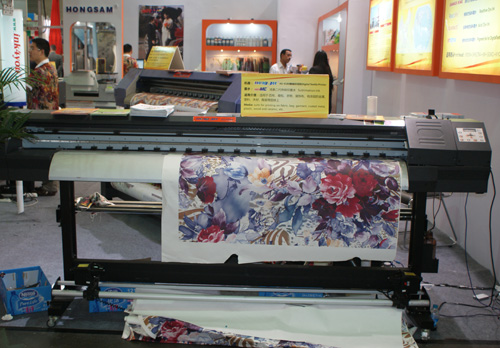 HJ-4162高速噴墨數(shù)碼印花機配合“鴻美?”二代熱轉(zhuǎn)印墨水熱轉(zhuǎn)印滌綸織物印花