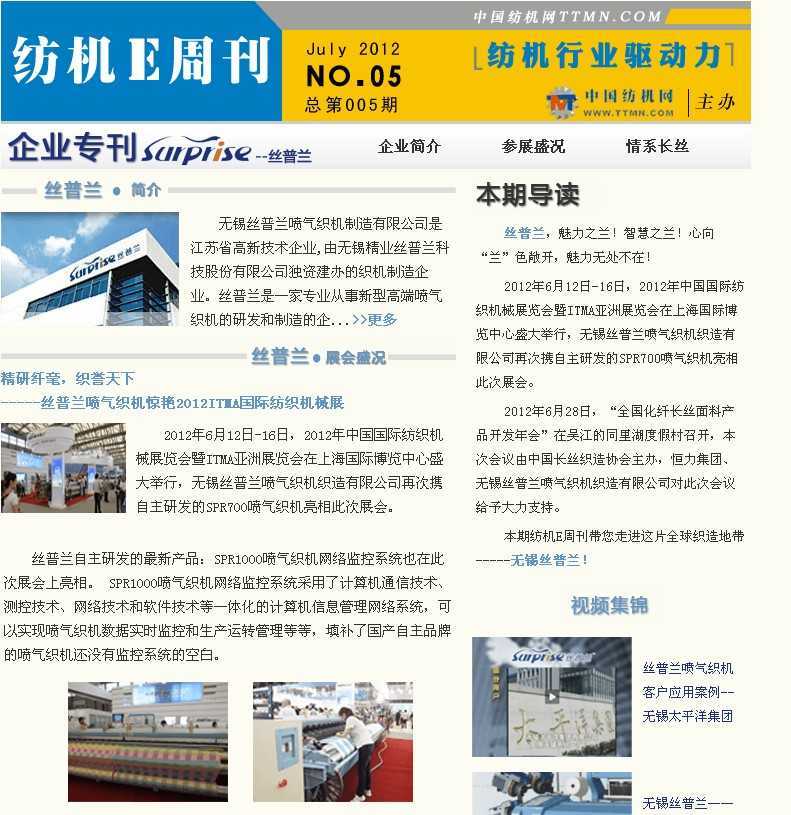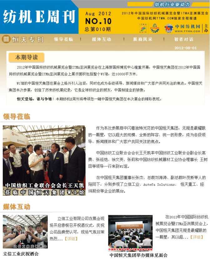 恒天集團企業(yè)???,針對恒天集團率領(lǐng)旗下子公司參加2012年國際紡機展的情況,只做了企業(yè)???,并在第一時間發(fā)送到其同行手中。這一??艿搅撕闾旒瘓F的肯定。