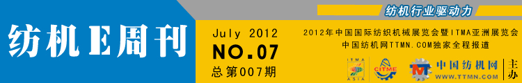 萬眾矚目的2012中國(guó)國(guó)際紡織機(jī)械展覽會(huì)暨ITMA亞洲展覽會(huì)已圓滿落下帷幕!中國(guó) 紡機(jī)網(wǎng)作為本次展會(huì)唯一參展的網(wǎng)絡(luò)媒體全程參與并進(jìn)行報(bào)道。紡機(jī)網(wǎng)TTMN.COM是紡機(jī)行業(yè)門戶 網(wǎng)站,作為這樣一家特殊的“參展商”,TTMN本著“ 全面,準(zhǔn)確,有效”的企業(yè)宗旨,第一時(shí)間對(duì)現(xiàn) 場(chǎng)的參展商做了詳細(xì)報(bào)道。本期紡機(jī)E周刊將帶您回顧本次展會(huì)的精彩看點(diǎn)!
