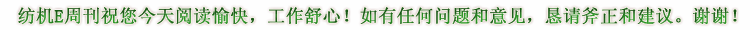 網(wǎng)絡E時代,悅讀零距離。紡機E周刊,閃亮新登場!紡機網(wǎng)全新打造電子雜志新欄目正式與您見面了!第一時間,第一現(xiàn)場,第一報道,第一發(fā)布。引導行業(yè)潮流,速遞紡機行情。紡機E周刊,紡機行業(yè)驅動力!