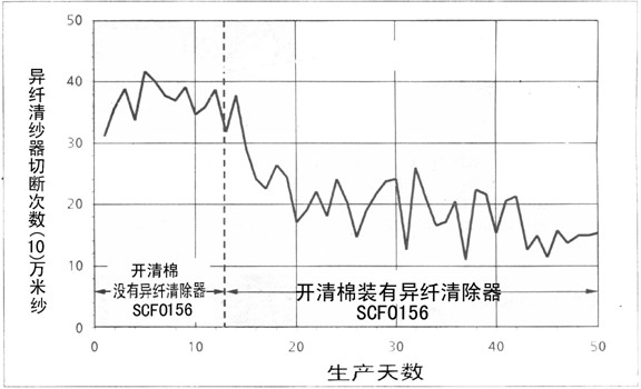 第三種、電子清紗器清除異纖:烏斯特公司研制開發(fā)了Uster Quantam Clearer異纖電子清紗裝置,這些電子清紗器安裝在自動(dòng)絡(luò)紗機(jī)上,實(shí)現(xiàn)了對(duì)原紗逐毫米的檢驗(yàn)、清紗、清除異纖,形成紡紗全過程完整的電子清除異纖系統(tǒng)。他們對(duì)以上三種方法做了關(guān)于清除異纖的試驗(yàn),試驗(yàn)結(jié)討論果如下: