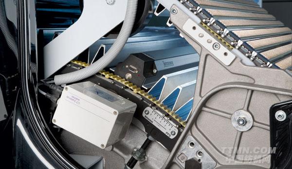 FLATCONTROL測量蓋板占據(jù)三根常規(guī)蓋板的位置,其傳感器通過在整個(gè)工作區(qū)域內(nèi)的移動(dòng),探測到錫林針布的距離。測量蓋板內(nèi)的微處理器存儲所有的測量值。這些數(shù)據(jù)被無線傳輸?shù)焦P記本電腦,制成圖表。