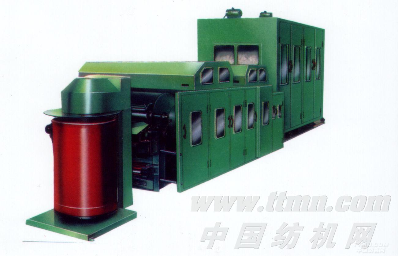 本機利用錫林、工作輥、剝毛輥、道夫之間的表面線速度,針布針向及轉(zhuǎn)向的各不相同,工作時對人造毛皮原料(化纖)混合開松梳理,制成一定重量的毛條,有規(guī)律地圈繞在條筒內(nèi),供人造毛皮織機或其它工序使用。