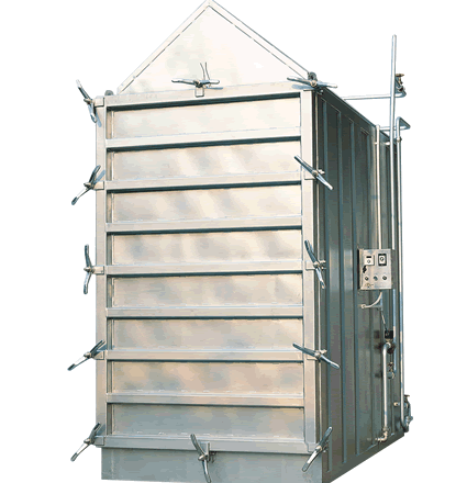 -----蒸紗機(jī)底部水箱及門(mén)采用304板(&2.5)制造,箱體采用304板(&1.2)制造,外層封板采用304(&1.2)制造,箱內(nèi)板與外層封板用方通以網(wǎng)格形式結(jié)構(gòu)加強(qiáng)。箱頂部采用間接加熱系統(tǒng)及保溫棉作為保溫,水箱采用直接系統(tǒng)直接加熱,最高工作溫度:95℃。