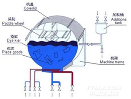 ★ 采用精確的正反轉控制器,自動控制漿葉正反運作,使缸內(nèi)織物均勻翻動,確??椢锶旧鶆?。