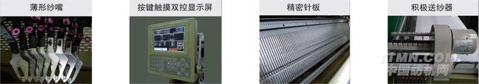 (13)換色系統(tǒng):2*8組紗嘴配置在4支導(dǎo)軌的左右兩側(cè),可在針床任何位置切換紗嘴。