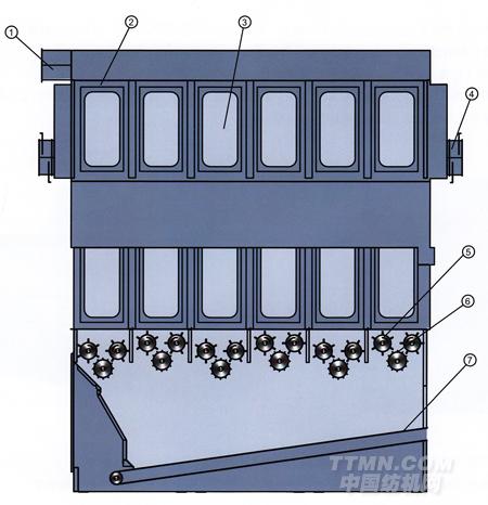 取消傳統(tǒng)復雜的汽缸、搖板分配裝置,纖維隨氣流隨機落入各個棉倉,因結(jié)構(gòu)簡單所以故障率低。