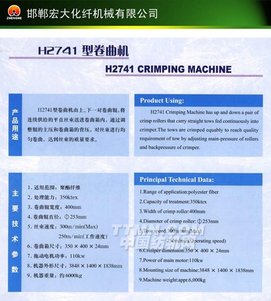 您所在的位置:紡機網(wǎng) > 產(chǎn)品庫 > HV/HD2741卷曲機