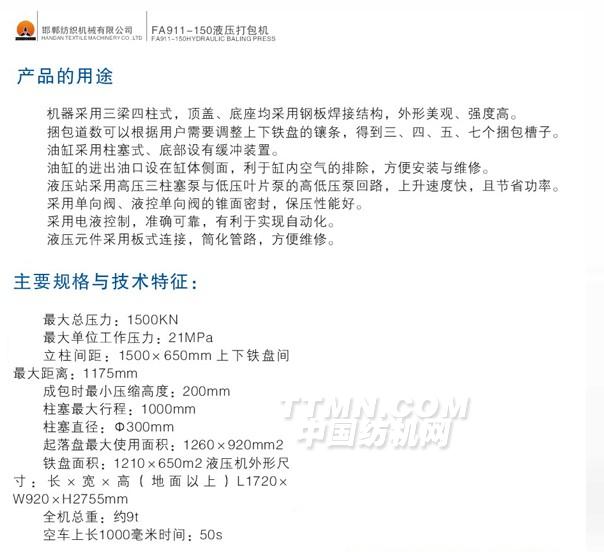 您所在的位置:紡機(jī)網(wǎng) > 產(chǎn)品庫(kù) > FA911D-150型 打包機(jī)