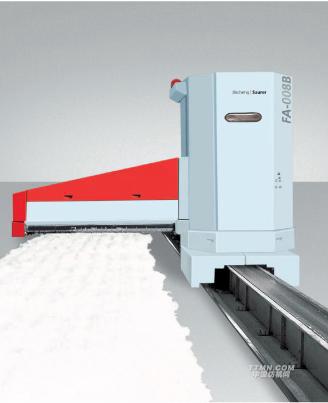 本機為往復式自動抓棉機,適用于抓取各種等級的原棉、棉型化纖及76mm以下的中長纖維,是開清棉聯(lián)合機組的第一道機臺。智能化的運行小車,能對雙品種原棉分別實行精細抓棉,被抓取的棉束被氣流輸送至后方機臺作進一步處理。