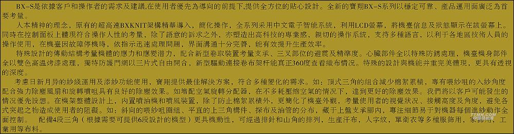 您所在的位置:紡機網(wǎng) > 產(chǎn)品庫 > BX-S-HF單面高腳架針織圓緯機